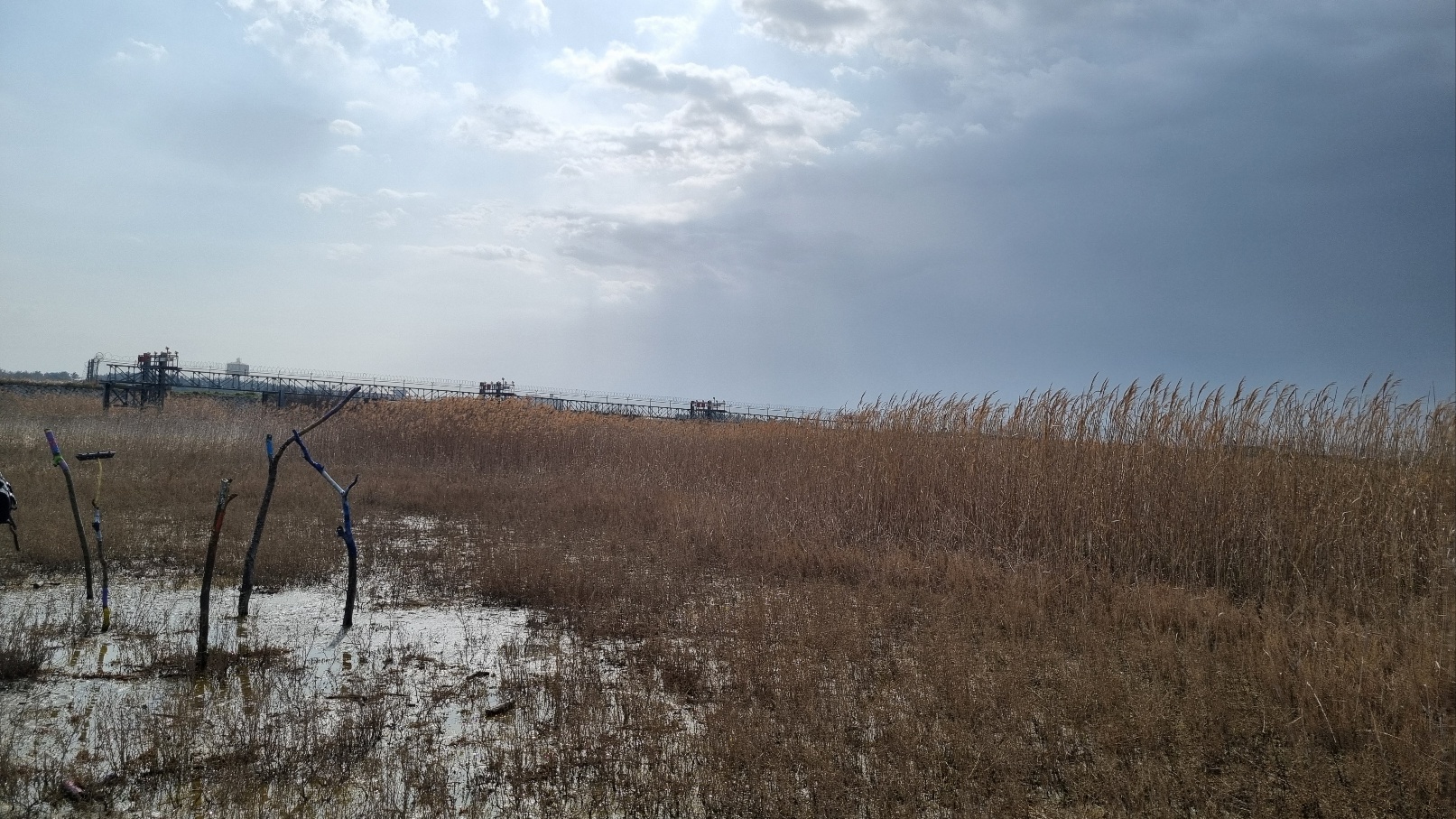 많은 갈대와 습지식물로 덮여있고