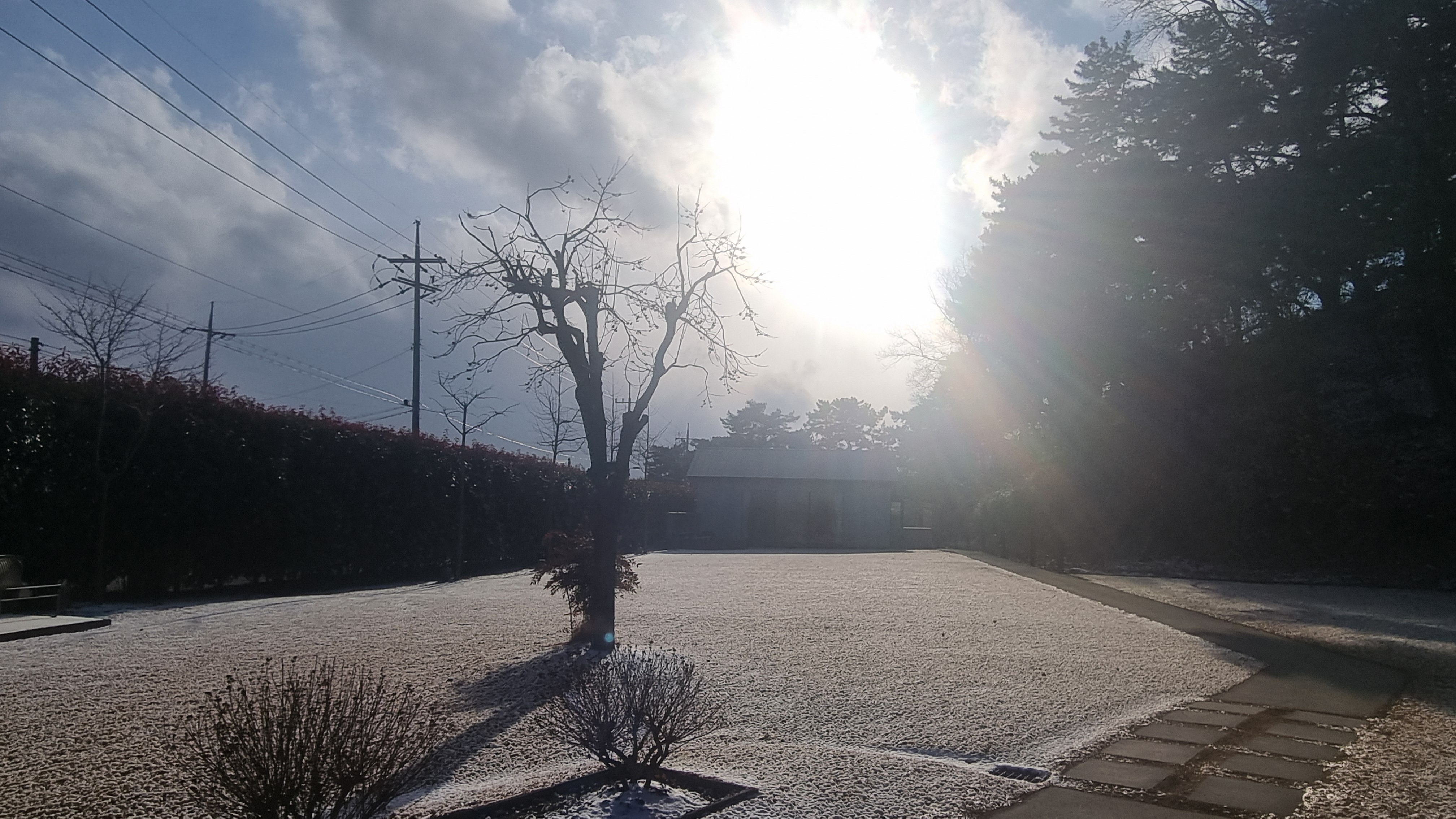 오늘, 나는 문득 시간의 틈새로 미끄러져 어린 날의 겨울 속으로 흘러 들어갔다. 창밖으로 하얗게 내려앉는 눈송이는 조용한 속삭임처럼 나를 감쌌고, 세상은 마치 오래된 흑백사진처럼 고요히 멈춰 있었다. 그 순간, 아버지가 넉가래로 눈을 밀던 소리가 아련히 귓가를 스쳤고, 어머니가 정성스레 끓이던 팥죽의 은은한 향기가 코끝을 간질였다. 멀리서 아이들의 웃음소리와 개 짖는 소리가 희미하게 번져오며, 나는 어느새 마음의 봉창문을 살며시 열고 그 시절의 나를 바라보고 있었다. 그러다 문득, 시간과 공간이 겹쳐지는 듯한 아득한 감각 속에서 그를 보았다. 말없이, 다만 곁에 있을 뿐인데도 모든 것이 충만해지는 순간. 흩날리는 눈발 속에서 우리는 함께였다. 그렇게 애써 믿고 싶었다. 따스한 기억처럼, 혹은 잊히지 않는 한 조각의 꿈처럼.