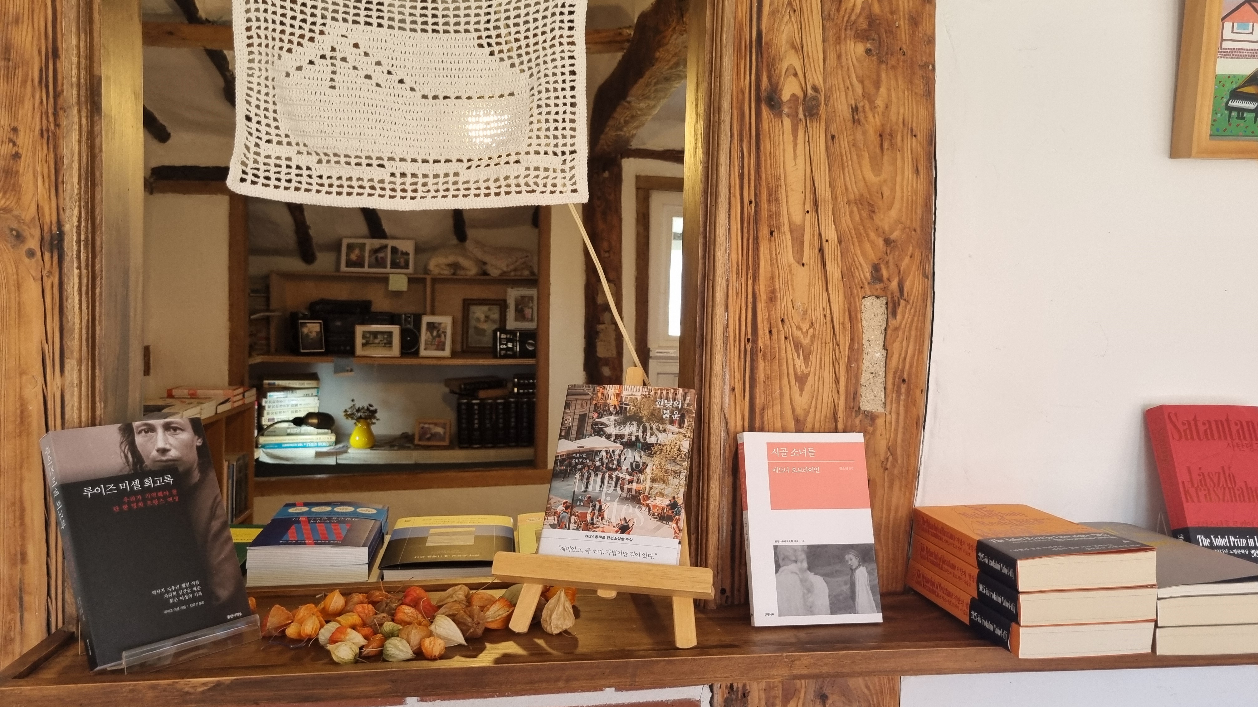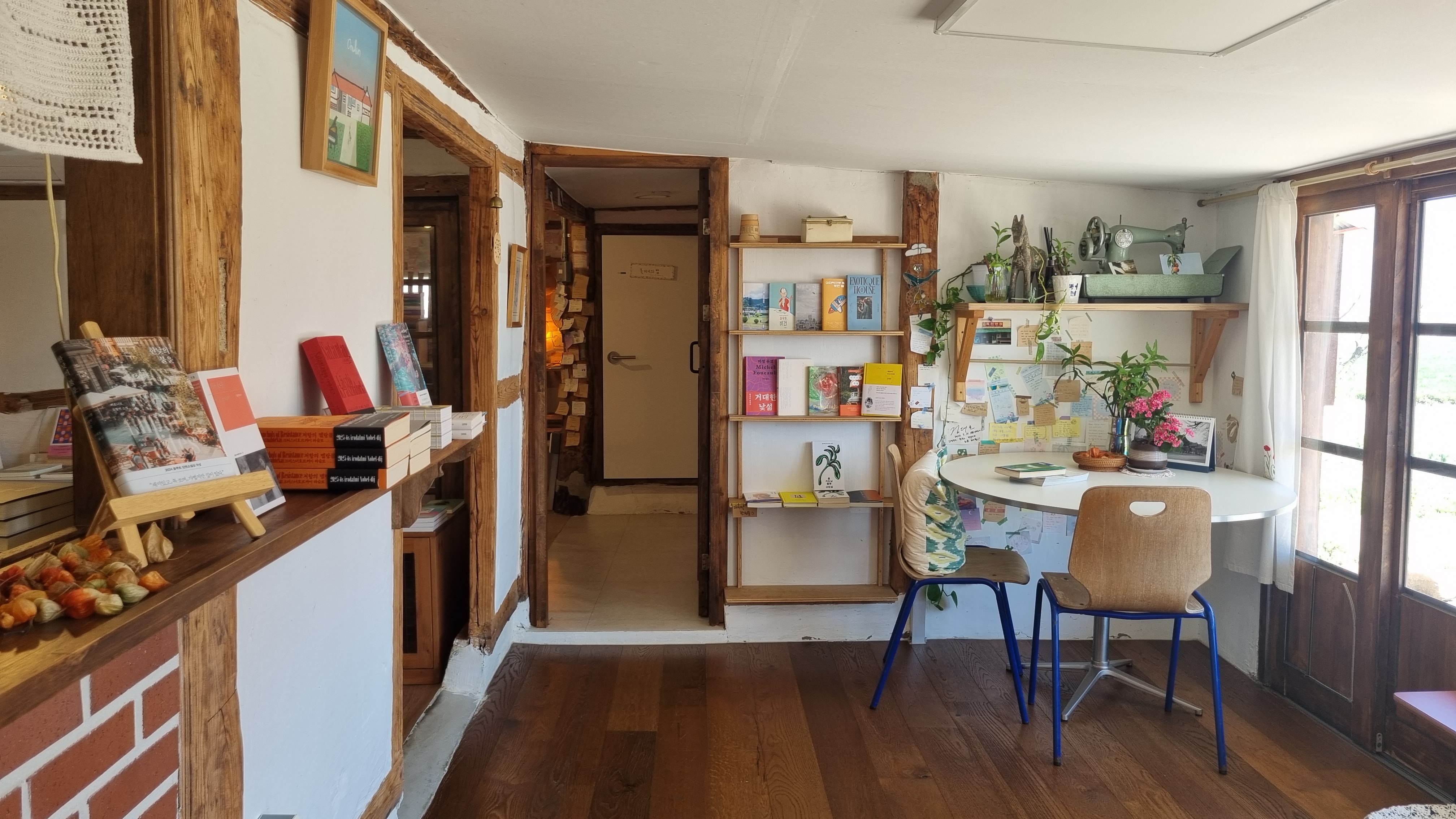 책밭의 방들은 작고 따뜻했다. 오래된 책들이 나무 선반 위에 줄지어 앉아 있었고, 창가에는 두 개의 의자와 작은 테이블이 있었다. 햇살이 들어와 책장을 비추면 글자들이 살아 움직이는 듯했다. 창가에는 말린 식물과 오래된 재봉틀, 그리고 누군가의 손길이 남은 찻잔이 있었고 창밖으로 보리밭이 펼쳐진 김제 평야가 보였다.
